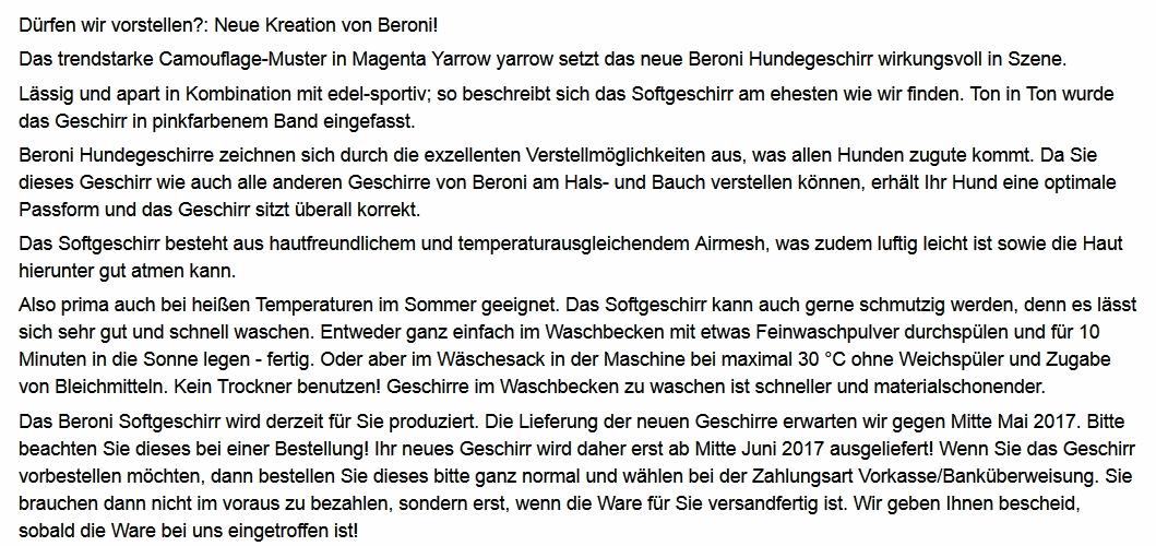 Diesen Hundegeschirr Artikel haben wir am 08.05.2017 in unseren Softgeschirr Katalog aufgenommen.